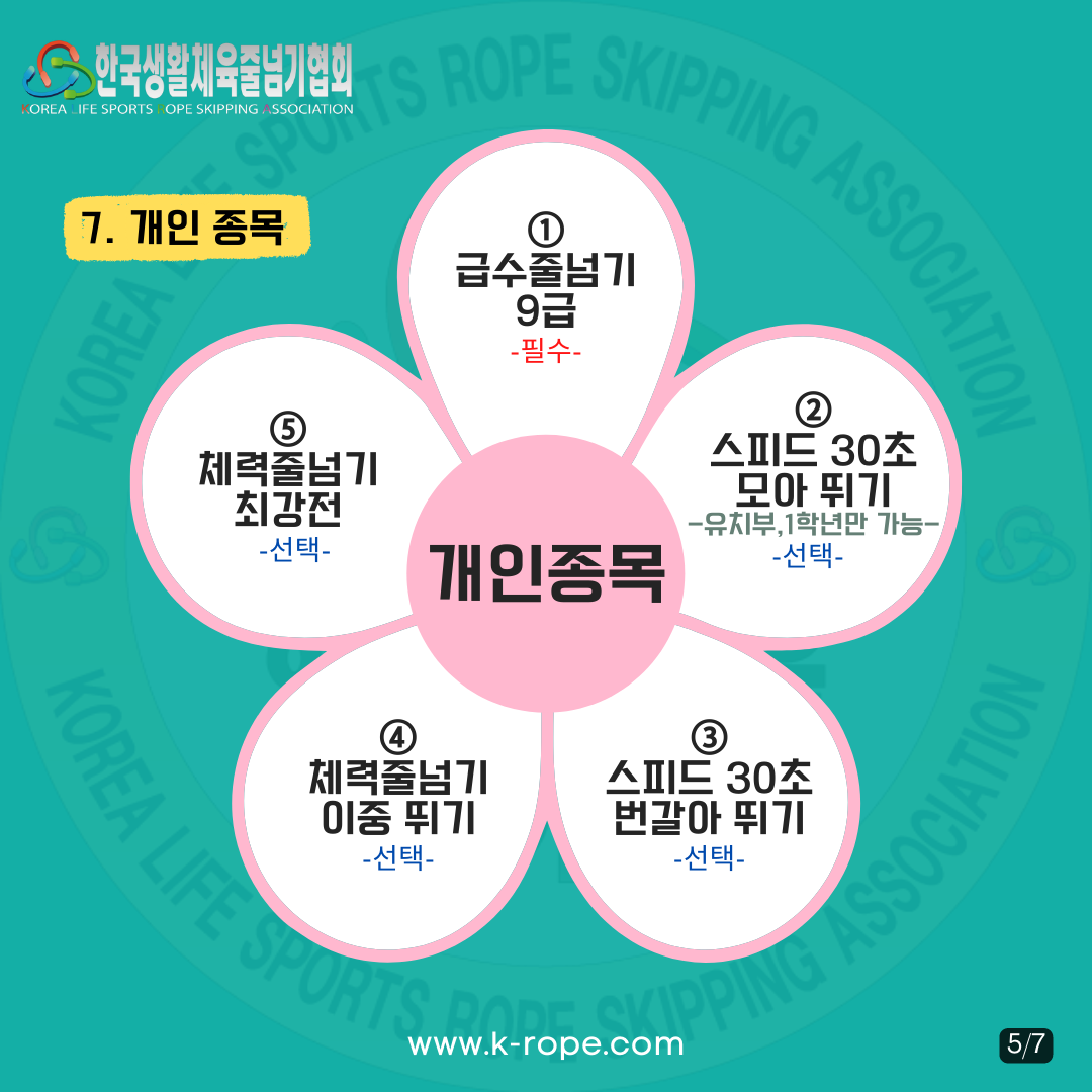 *모든 참가자는 급수줄넘기 한 종목은 필수. 나머지 종목은 선택.