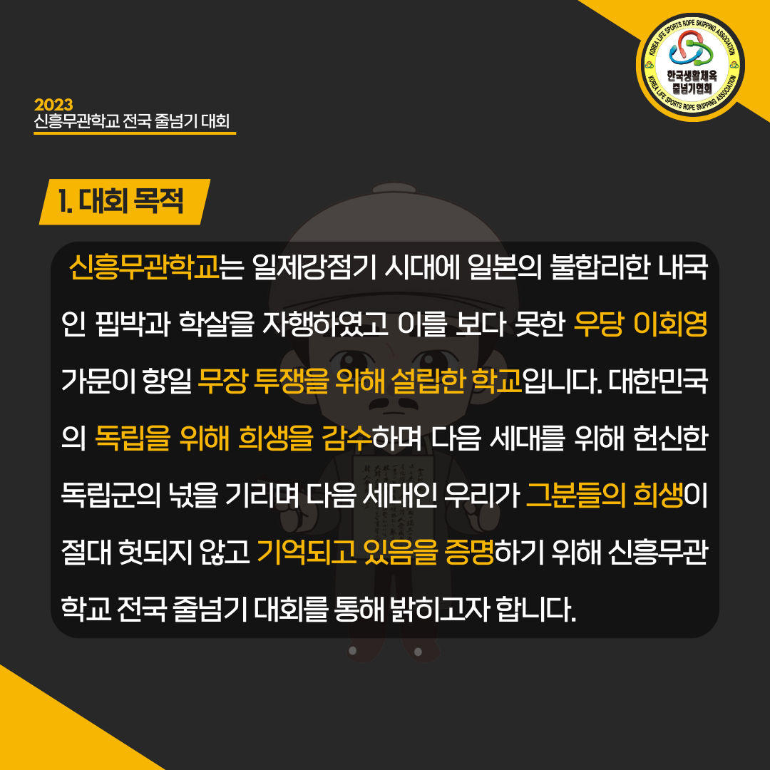 대회 2023.10.14(토) 신흥무관학교 전국 줄넘기 대회 요강