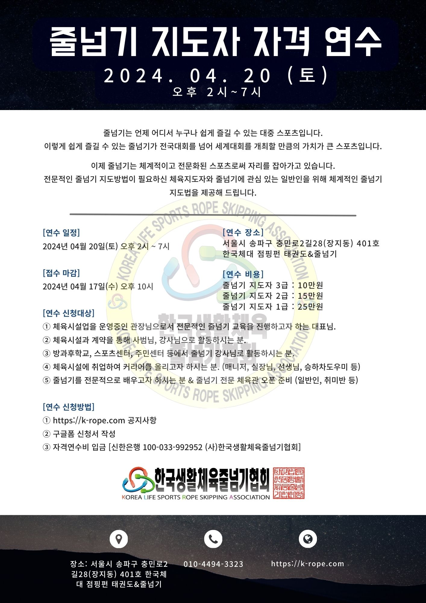 자격심사 [2024.04.20(토)] 줄넘기 지도자 자격 연수 - 서울 송파