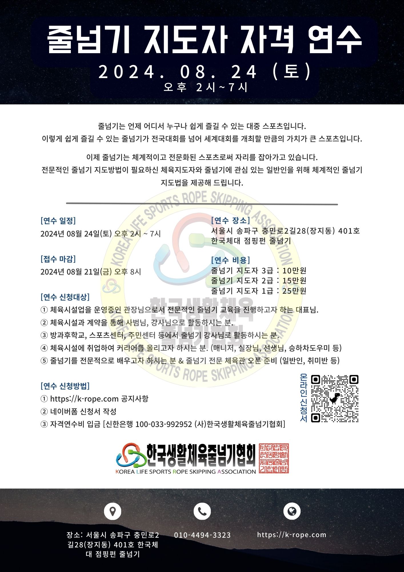 자격심사 [2024.08.24(토)] 줄넘기 지도자 자격 연수 - 서울 송파