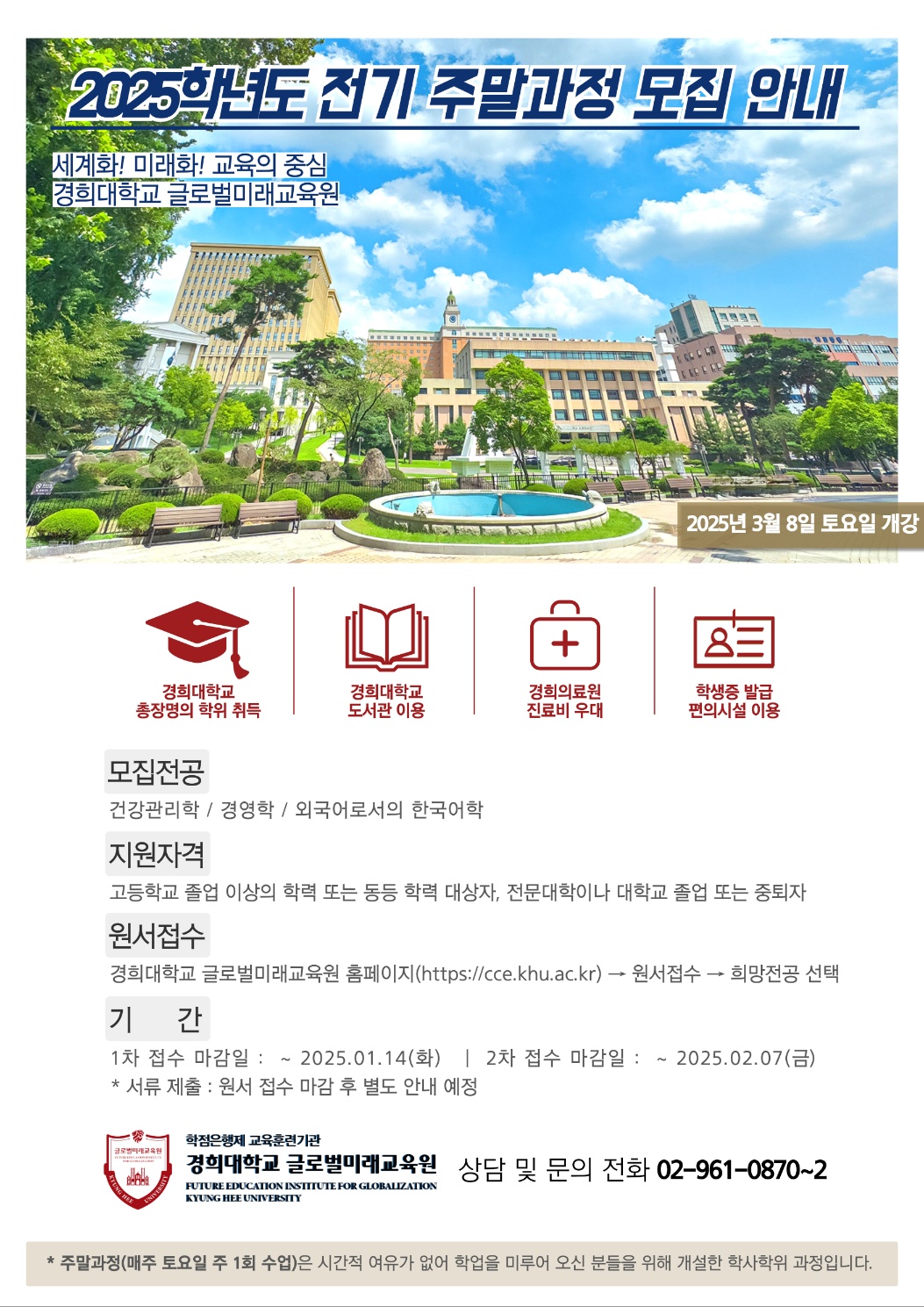 일반 2025년도 전기 경희대학교 글로벌미래교육원 주말과정 모집