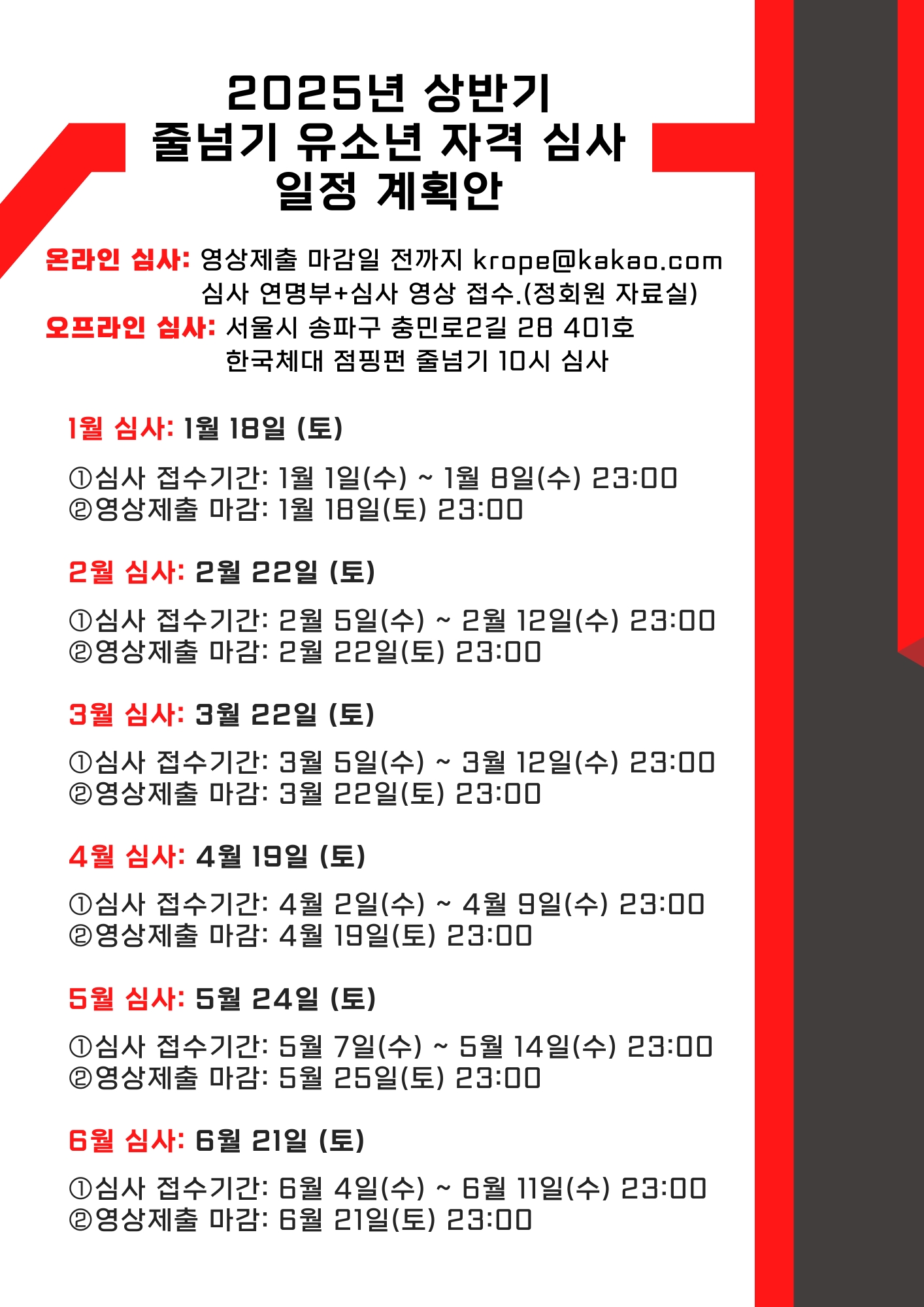 자격심사 2025년 줄넘기 유소년 자격 심사 일정 계획안